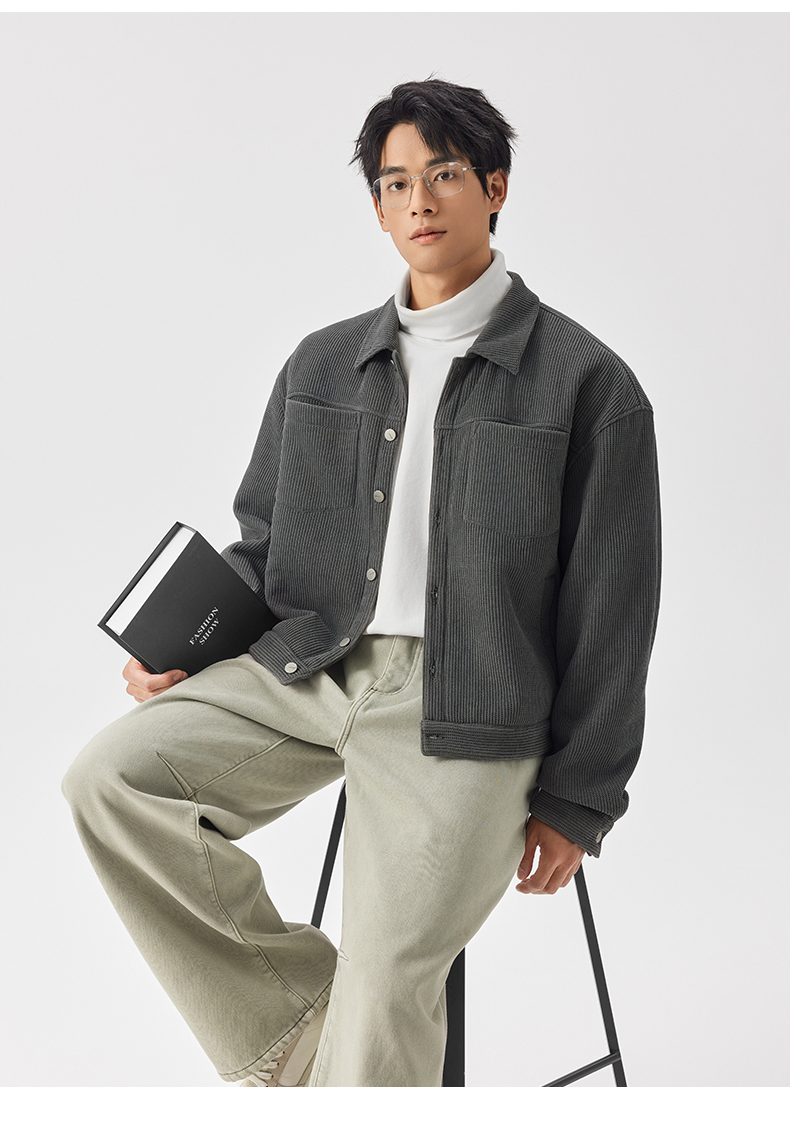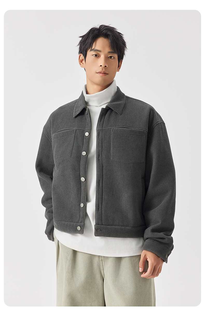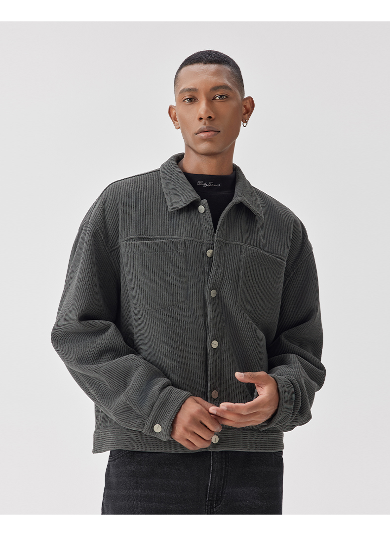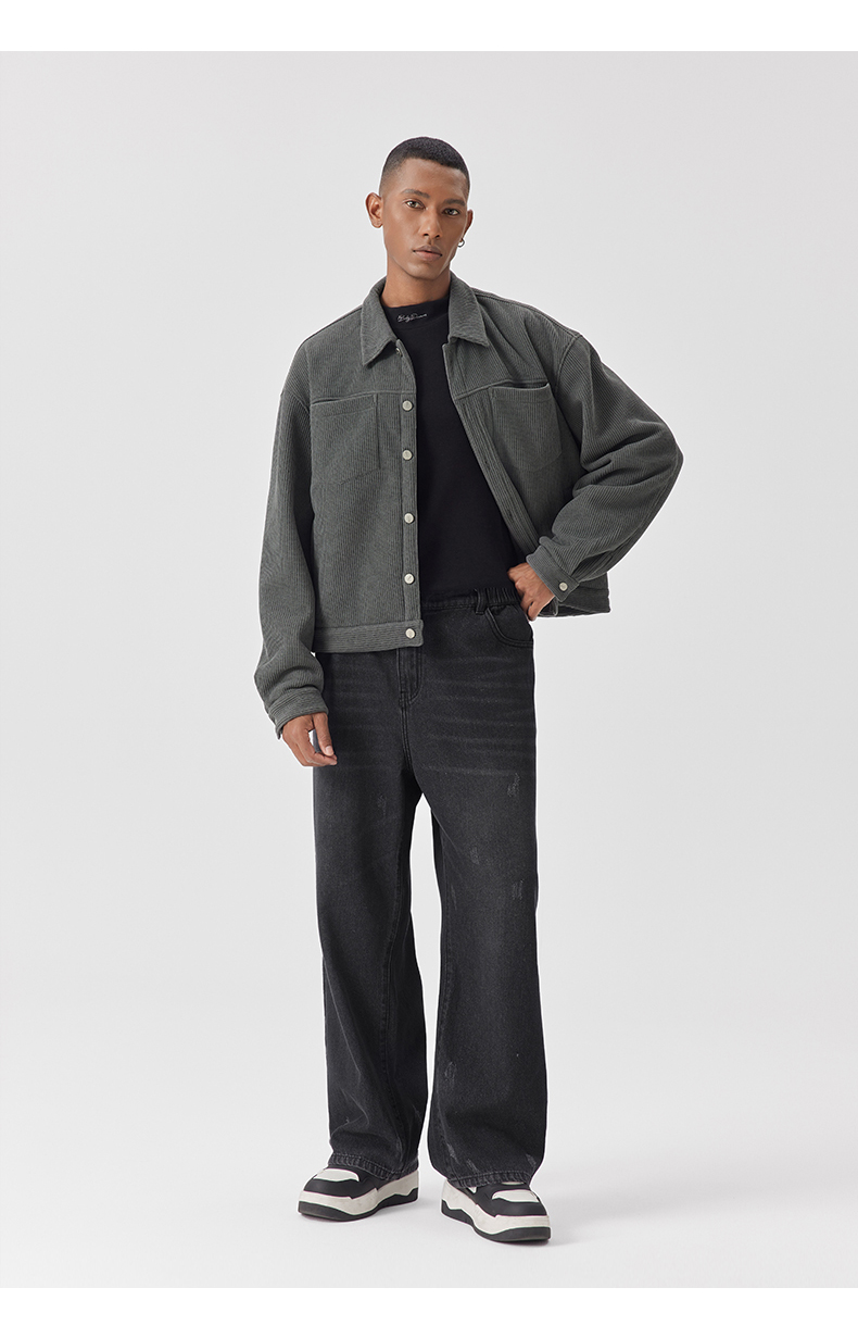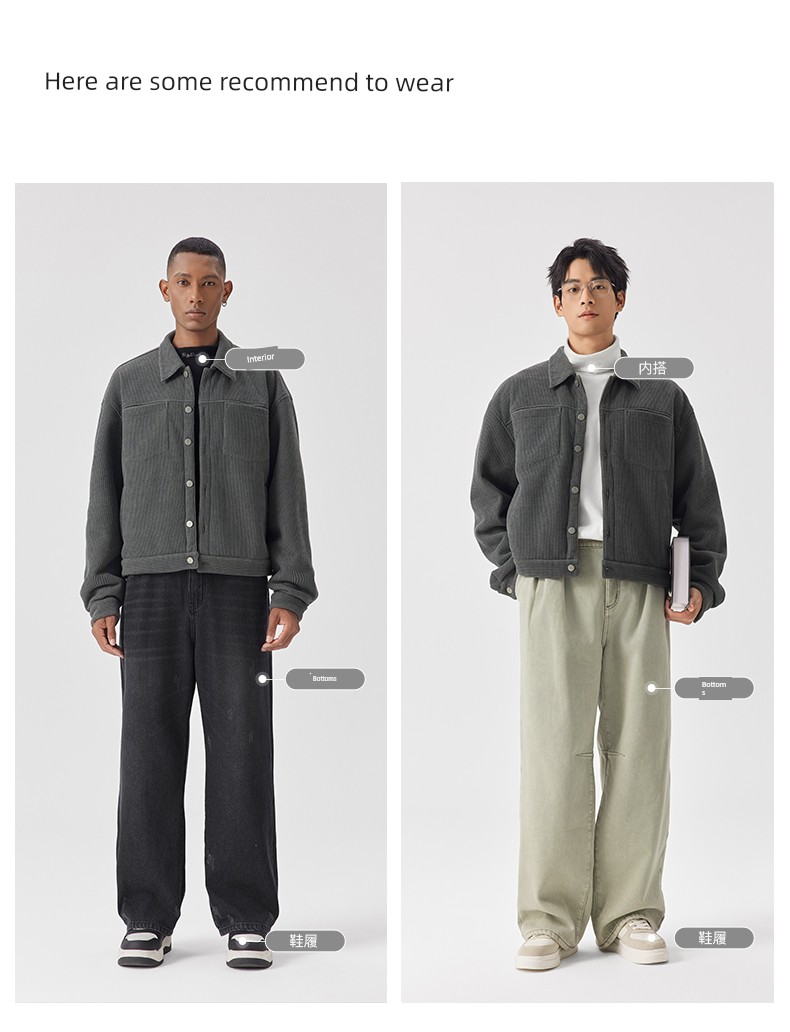 Bodydream BM Fleece-lined Men Outwear Autumn Winter Retro Thickened Work Clothes Jacket Texture Casual Tops